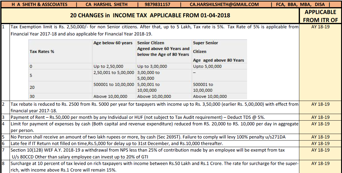 Major Amendments in Income Tax applicable for A.Y. 2018-19
