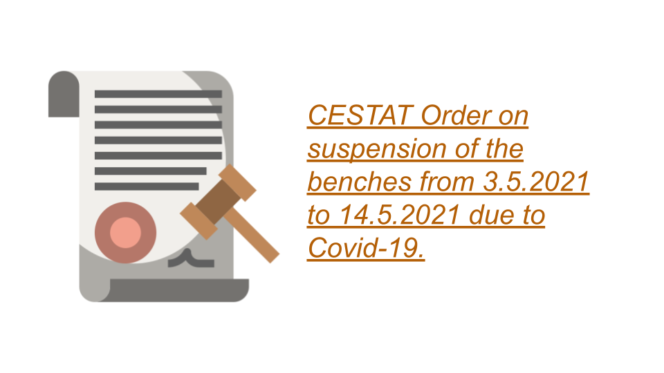 ConsultEase Administrator wrote a new post, CESTAT Order on suspension of the benches from 3.5.2021 to 14.5.2021 due to Covid-19. 4 years, 9 months ago