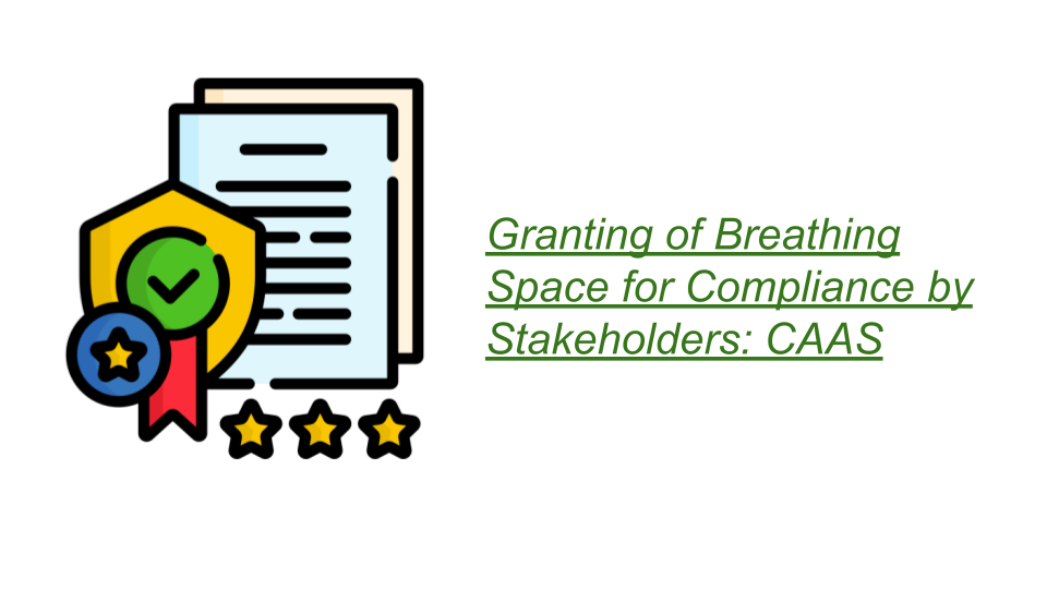 Sub: Granting of Breathing Space for Compliance by Stakeholders