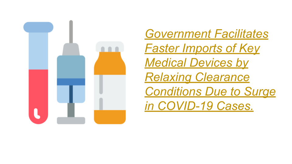 Government Facilitates faster imports of key medical devices by relaxing the conditions for clearances under Legal Metrology (Packaging Rules 2011)