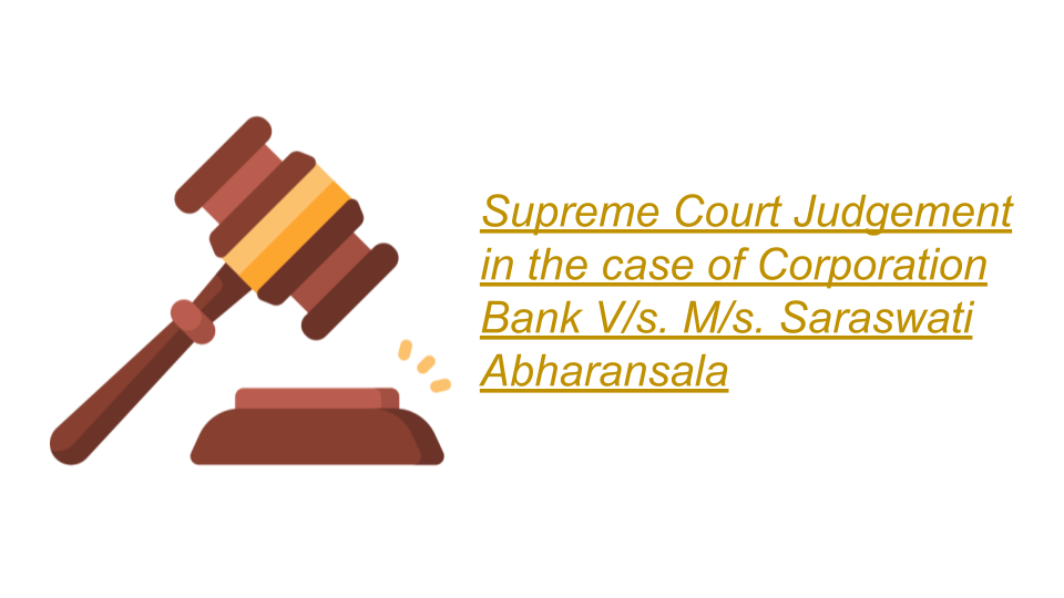 ConsultEase Administrator wrote a new post, Supreme Court in the case of Corporation Bank Versus M/s. Saraswati Abharansala 4 years, 9 months ago