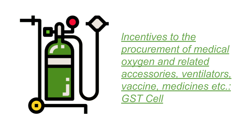 ConsultEase Administrator wrote a new post, lncentives to the procurement of medical oxygen and related accessories, ventilators, vaccine, medicines etc.: GST Cell 4 years, 9 months ago