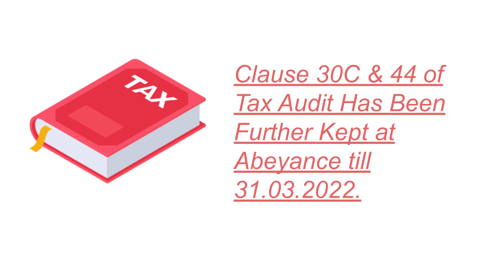 ConsultEase Administrator wrote a new post, Clause 30C & 44 of Tax Audit Has Been Further Kept at Abeyance till 31.03.2022. 4 years, 10 months ago