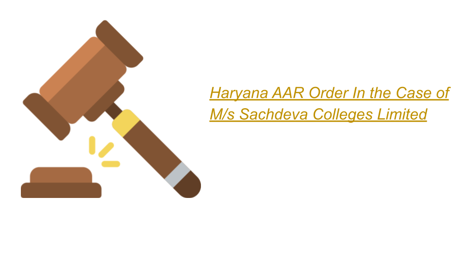 ConsultEase Administrator wrote a new post, Haryana AAR Order In the Case of M/s Sachdeva Colleges Limited 4 years, 7 months ago