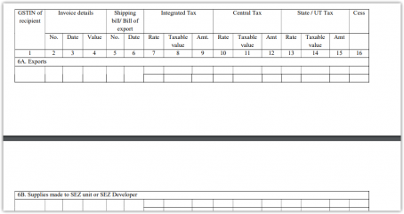 In the Central Goods and Services Tax Rules, 2017, – (i) in FORM GSTR-1, for Table – 6, the following shall be substituted, namely:-
